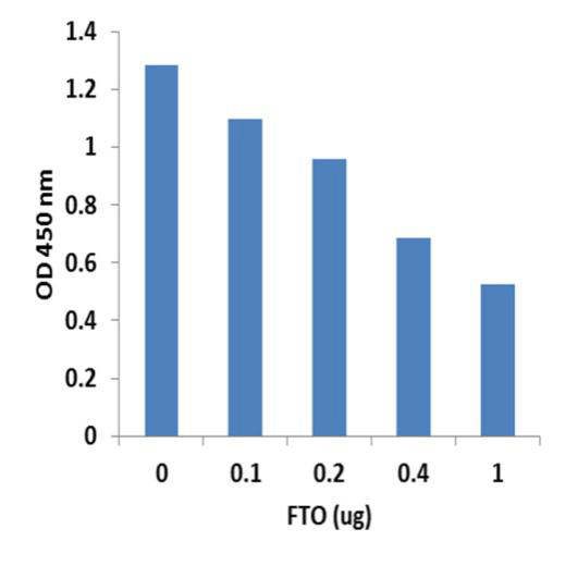 添加不同濃度重組FTO酶,測定OD值。OD值與FTO酶活性成反比。