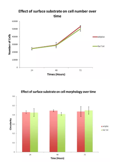 集各種優(yōu)勢(shì)于一身,細(xì)胞在水母膠原蛋白上的生長(zhǎng)同樣也是棒棒的。