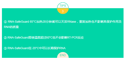 將RNA-SafeGuard Reagent (20X)用滅菌水稀釋成1X濃度,65°C反應(yīng)20分鐘滅活水中、瓶中的RNase。剩余的1X RNA保存液