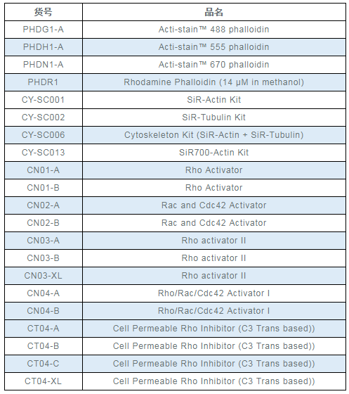 由于產(chǎn)品比較有特色,研究細(xì)胞骨架總是繞不開他們,包括F-actin、Tubulin的可視化以及信號(hào)通路中rac/cdc/rho的激活劑抑制劑等,同時(shí)促銷時(shí)間短暫,只到2月底(真希望這個(gè)2月有31天),