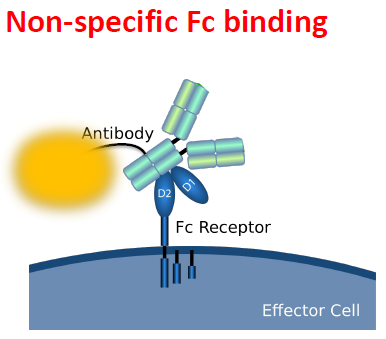 在我們流式實驗中,通常使用的抗體都是會有Fc段存在的,而細胞如果高表達Fc受體(比如巨噬細胞、B細胞或者腫瘤細胞等),那么在抗體染色的過程中,很有可能抗體Fc段會與細胞表面的Fc受體進行結(jié)合,從而產(chǎn)生非特異性的染色結(jié)果,最終導致流式實驗結(jié)果假陽性/假陰性的存在。