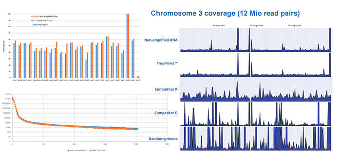右圖:3號染色體圖譜的覆蓋模型,TruePrime?擴(kuò)增得到的DNA與未擴(kuò)增的DNA覆蓋率接近。