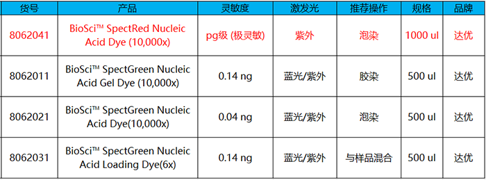 簡(jiǎn)單來(lái)說(shuō),就是小達(dá)要給大家推薦一款真正安全無(wú)毒的核酸染料,來(lái)自達(dá)優(yōu)的SpectRedNucleic Acid Dye(貨號(hào):8062041),簡(jiǎn)稱ND4。