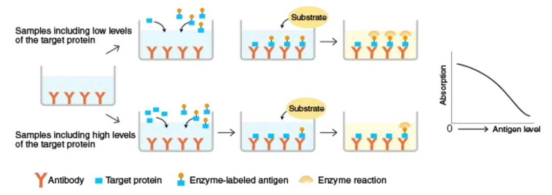 1、樣本中分析物水平較低可以使用哪些方法改進(jìn)檢測(cè)?通過(guò)增加洗滌次數(shù)和兩次洗滌之間的浸泡時(shí)間降低背景。控制測(cè)定精確度。例如,在移液時(shí)要更加小心和一致,使用干凈的紙巾拍板,以避免污染。增加孵育時(shí)間。但這通常也會(huì)增加背景,因此檢測(cè)靈敏度不一定會(huì)增加。如果可以的話,建議濃縮樣本。使用5-PL曲線擬合方法,更準(zhǔn)確地計(jì)算標(biāo)準(zhǔn)曲線下端的樣本濃度。在大多數(shù)情況下,樣本可能只含有非常低或無(wú)法檢測(cè)到的分析物水平。這時(shí)無(wú)論如何操作和測(cè)定,仍然無(wú)法檢測(cè)到準(zhǔn)確濃度。2、包板應(yīng)如何存放?如果包被完抗體的板不能立即使用,應(yīng)將其密封并在4°C儲(chǔ)存過(guò)夜。3、為什么使用同一克隆號(hào)的捕獲抗體和檢測(cè)抗體建立ELISA實(shí)驗(yàn)沒(méi)有成功?如果使用相同的克隆抗體進(jìn)行檢測(cè)和捕獲,則抗原表位可能已經(jīng)被其中一種抗體占據(jù)并抑制另一抗體結(jié)合。建議捕獲和檢測(cè)抗體選擇不同的克隆號(hào)。4、應(yīng)該使用哪種包被緩沖液?一般來(lái)說(shuō),建議使用PBS(pH 7.4)或碳酸鹽緩沖液(pH 9.5)。確切的包被緩沖液可能取決于要檢測(cè)的細(xì)胞因子。5、為什么細(xì)胞因子流式染色與ELISA測(cè)定之間沒(méi)有良好的相關(guān)性?流式細(xì)胞術(shù)檢測(cè)的胞內(nèi)細(xì)胞因子代表檢測(cè)時(shí)的陽(yáng)性細(xì)胞比例,ELISA代表細(xì)胞因子隨時(shí)間的積累量。可能少量的陽(yáng)性細(xì)胞在一段時(shí)間之后會(huì)分泌大量的細(xì)胞因子于培養(yǎng)上清中,導(dǎo)致ELISA的結(jié)果與胞內(nèi)因子染色的結(jié)果不一致6、可以使用細(xì)胞培養(yǎng)板進(jìn)行ELISA實(shí)驗(yàn)嗎?不可以。細(xì)胞培養(yǎng)板設(shè)計(jì)用于達(dá)到細(xì)胞培養(yǎng)目的,通常不具有高蛋白結(jié)合能力。對(duì)于ELISA,建議使用具有高蛋白結(jié)合能力的板,例如 Nunc Maxisorp?酶標(biāo)板。7、血清等樣本可以重復(fù)使用嗎?不建議重復(fù)使用樣本。為了獲得準(zhǔn)確的結(jié)果,樣本應(yīng)分裝儲(chǔ)存,僅供一次性使用。如果重復(fù)使用樣本,需要進(jìn)行額外的驗(yàn)證實(shí)驗(yàn),以確保實(shí)驗(yàn)準(zhǔn)確性。8、在什么步驟中,可以暫停ELISA實(shí)驗(yàn)?可以冷凍板子以備后用嗎?最好遵循說(shuō)明書(shū)操作,沒(méi)有任何可以暫停實(shí)驗(yàn)的步驟。但是,如果一定需要暫停實(shí)驗(yàn),建議在封閉步驟(包被捕獲抗體后)??梢栽诳字屑尤?00 μL封閉緩沖液,并將板在4°C過(guò)夜(信號(hào)損失最小或沒(méi)有)或在-20°C冷凍幾天(可能會(huì)對(duì)信號(hào)產(chǎn)生一些影響)。不建議在第一步進(jìn)行(在4°C用捕獲抗體包被超過(guò)16-20小時(shí)),因?yàn)榭赡軙?huì)導(dǎo)致高背景。9、包被捕獲抗體可以超過(guò)過(guò)夜的時(shí)間嗎?通常來(lái)說(shuō),建議在4°C包被16-20小時(shí)。較長(zhǎng)的孵育時(shí)間可能會(huì)增加與板結(jié)合的捕獲抗體量,會(huì)增加背景。10、培養(yǎng)基中的酚紅會(huì)干擾ELISA測(cè)定嗎?不會(huì),培養(yǎng)基中酚紅的吸光度可以在計(jì)算時(shí),通過(guò)扣除空白孔中本底的吸光度而消去,因此不會(huì)干擾ELISA測(cè)定的讀數(shù)。11、對(duì)于一些ELISA試劑盒,為什么血清樣本需要稀釋?血清樣本稀釋可以盡量減少樣本和標(biāo)準(zhǔn)品之間的基質(zhì)差異,以獲得更加準(zhǔn)確的結(jié)果。12、如何提高ELISA檢測(cè)獲得更好的信號(hào)和靈敏度?增加孵育時(shí)間,但這也可能會(huì)增加檢測(cè)的背景,同時(shí)不改變靈敏度。在孵育步驟中搖動(dòng)板子。確保標(biāo)準(zhǔn)品在使用前完全溶解。在兩次洗滌之間增加浸泡時(shí)間,以進(jìn)一步降低背景。如果可以的話,在450-570 nm處讀板以減去本底。通過(guò)控制移液誤差或使用更大體積的洗滌緩沖液洗滌來(lái)改善CV值。使用5-PL或4-PL曲線擬合方法,而不是線性曲線擬合。